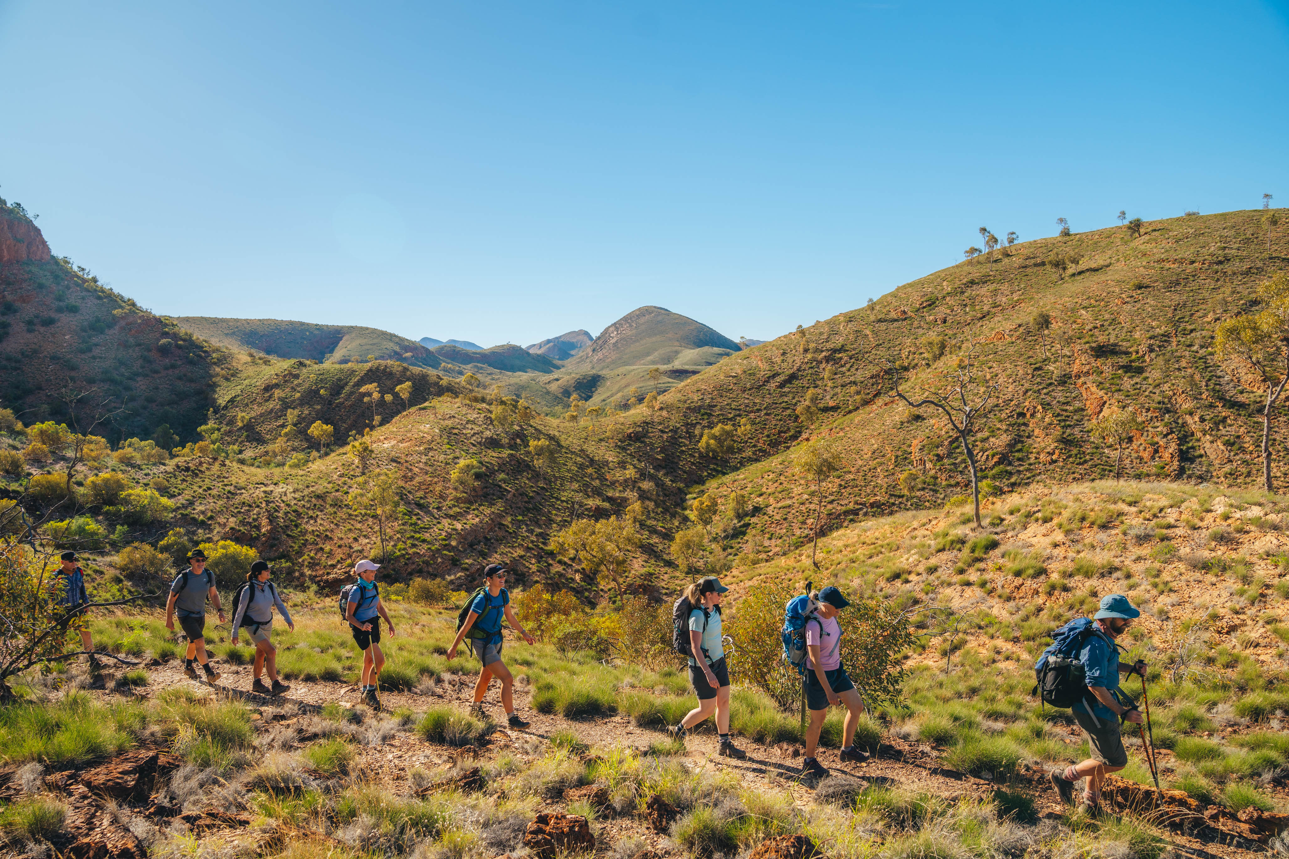 You’ll walk sacred Arrernte lands and summit Mt Sonder (Rwetyepme) before dawn to see the desert wake below you. The days are long and the trail demands effort, focus and grit.